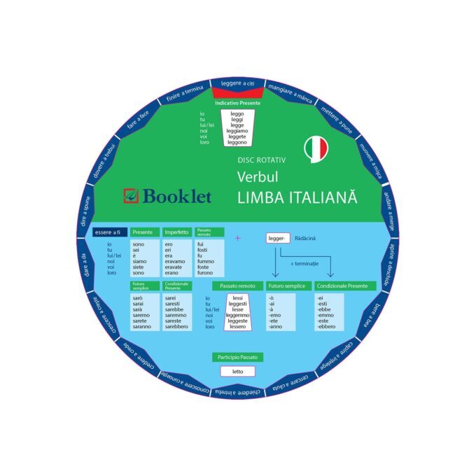 Limba italiană. Verbul este un dispozitiv cu un format inovator, ușor de utilizat, ce cuprinde peste 40 de verbe, conjugate la toate timpurile și modurile, cu explicații despre regulile de formare.