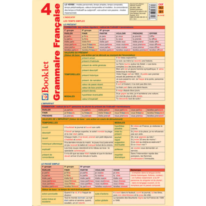 Pliantul este structurat astfel: Le Verbe – modes personnels, temps simples, temps composés, temps périphrastiques, valeurs temporelles et modales; la concordance des temps à l’indicatif/ au subjonctif; voix active/ voix passive; modes impersonnels.