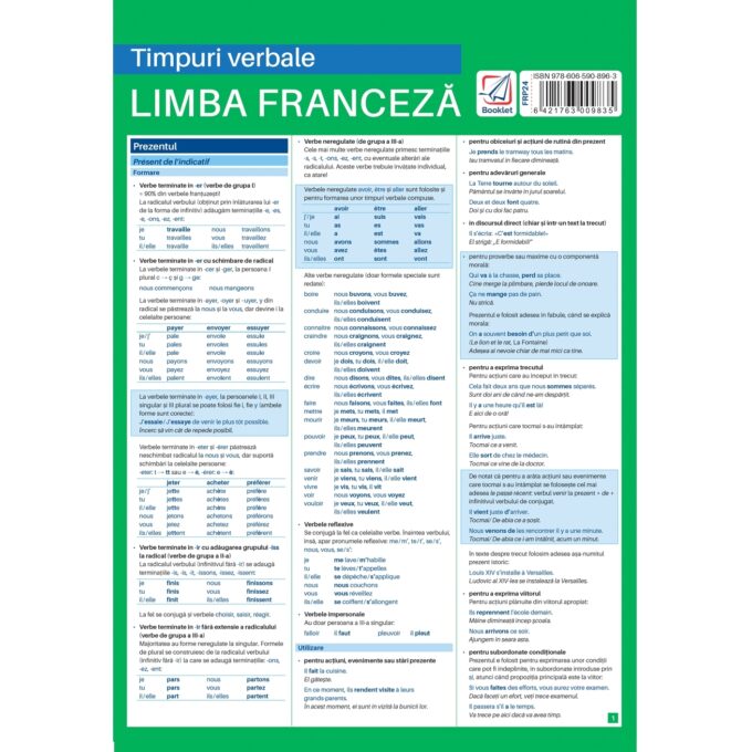 Pliantul conține informații despre formarea și utilizarea celor mai importante 9 timpuri verbale precum și cuvintele și expresiile în care sunt folosite.