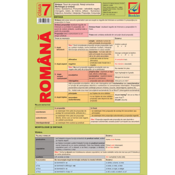 Pliantul cuprinde principalele noțiuni de clasa a VII-a, împărțite în două mari secțiuni: Sintaxă și Morfologia și sintaxa. Sintaxa cuprinde următoarele titluri: Tipuri de propoziţii și Relaţii sintactice, iar secțuiunea Morfologie și sintaxă conține: Verbul, Substantivul, Pronumele – nehotărât, negativ, interogativ, relativ, de întărire, reflexiv – Numeralul, Adjectivul, Adverbul, Interjecţia, Prepoziţia, Conjuncţia.